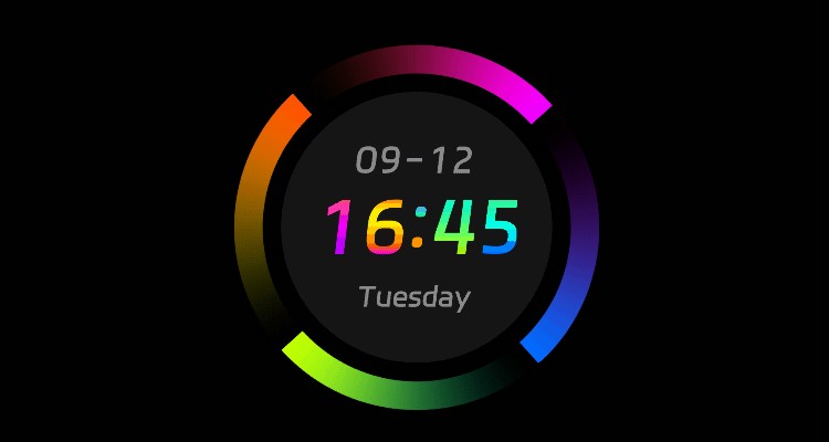 10、彩色转圈时钟屏保效果,秒针虚拟成转圈的彩色条状,看你能找到哪个是0秒的颜色;